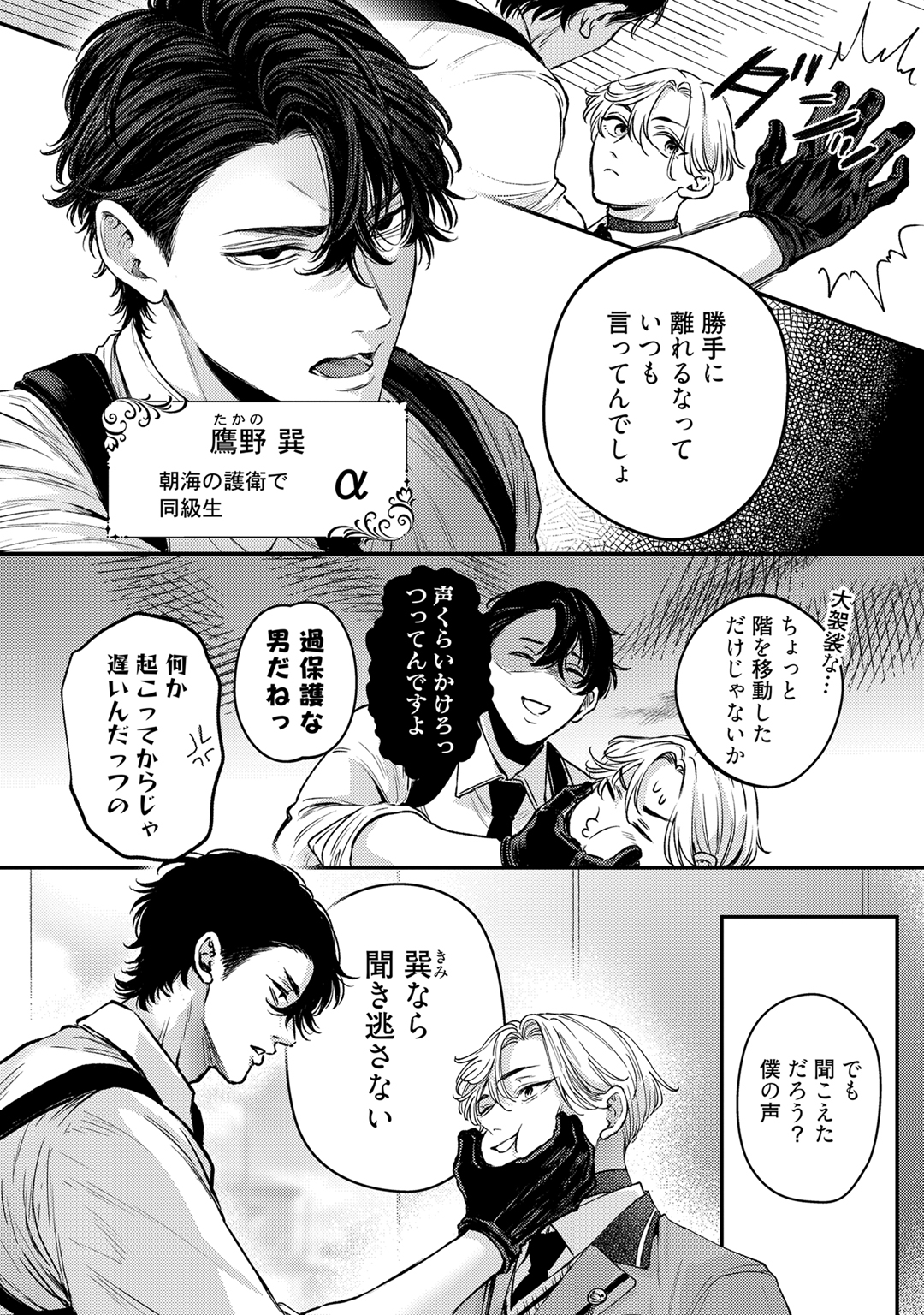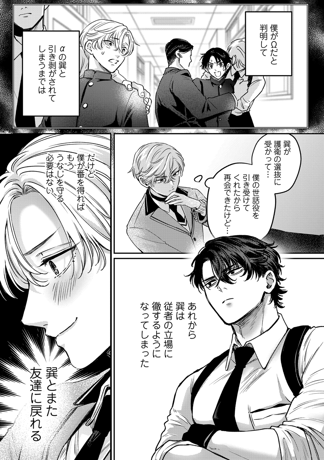 落ち込む朝海をそばで支えるのは、幼馴染で世話係α・巽。